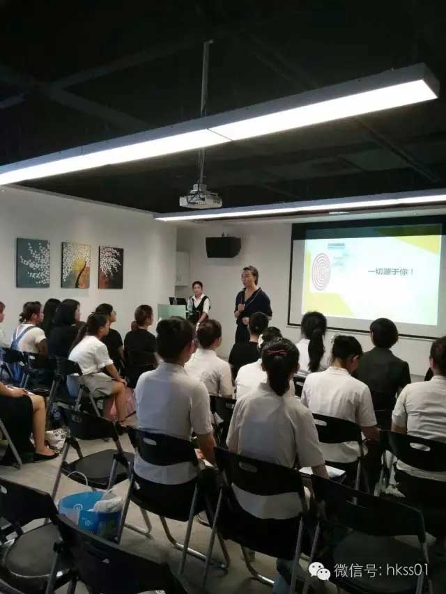 盛世黃玉蘭總監為艾倫美容的寶貝們講解項目優勢及專業知識